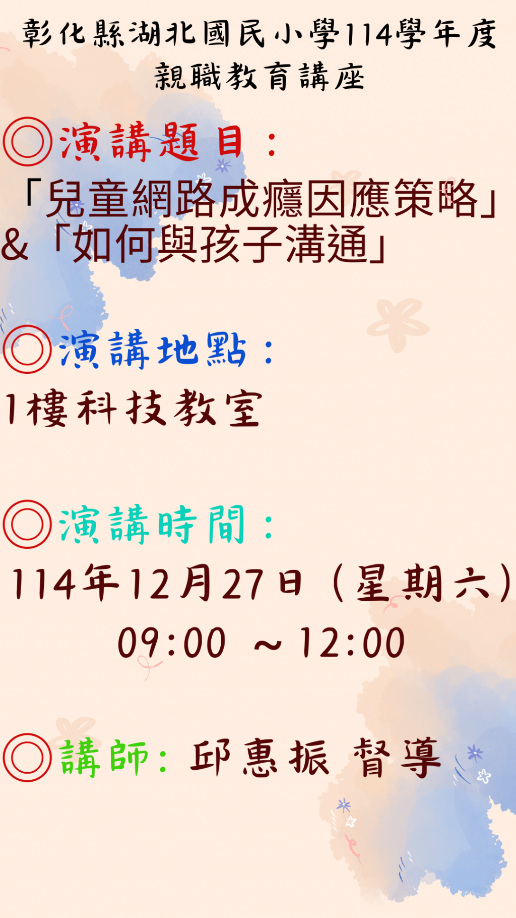 114.12.27教育優先區親職教育講座歡迎參加09:00-12:00