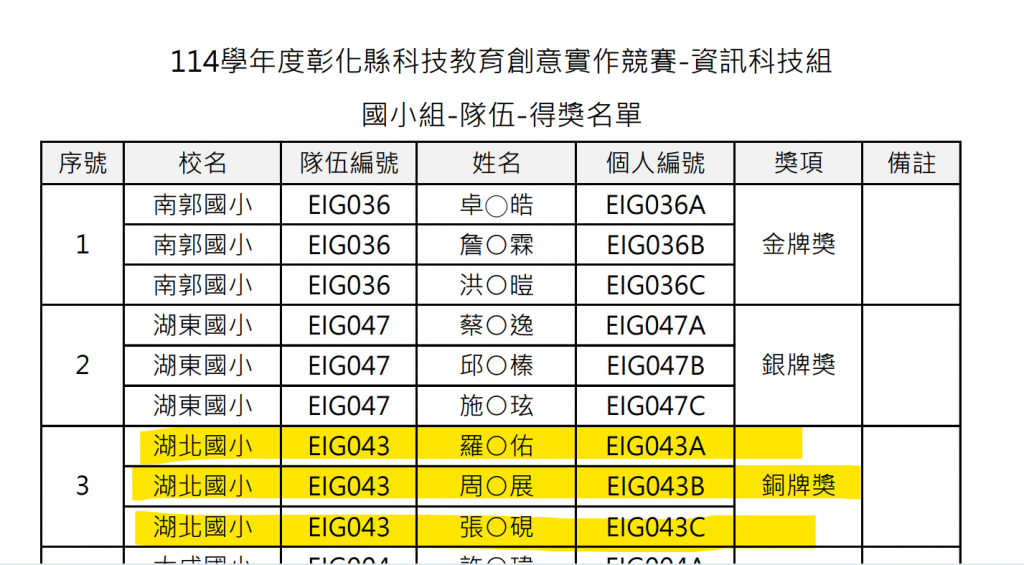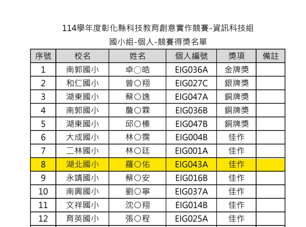 本校參與彰化縣科技教育創意實作競賽,榮獲佳績。 感謝智文老師平日的辛勤指導和校長的支持鼓勵以及各位導師的協助。